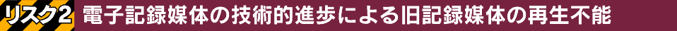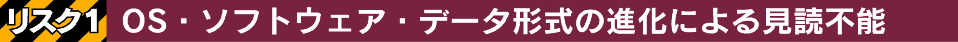 OS・ソフト・データ形式を複雑にからむ電子データは未来のパソコンで作成時と同じ状態で表示される保証はありません。かつてワープロで作成した文書が、機種の互換性がないために読み出せなくなった経験をした方も多いことでしょう。
