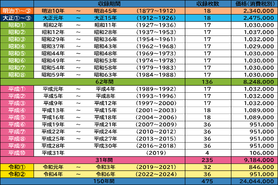 ■収録内容は、福岡県全域版合計でDVD120枚の構成となっており、各県版合計で236枚、地方版総合 計として356枚で構成されています。