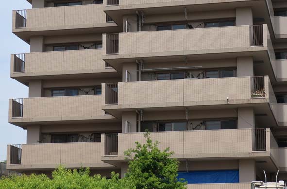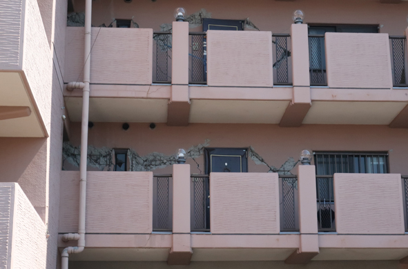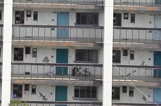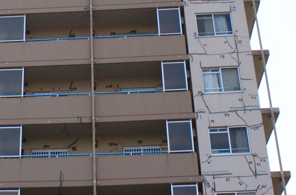 外壁に亀裂の入った10階建物件(熊本市中央区・2016/8/16)
