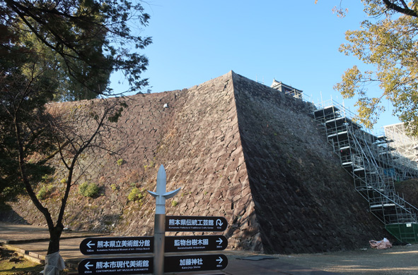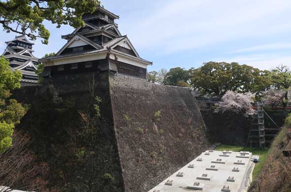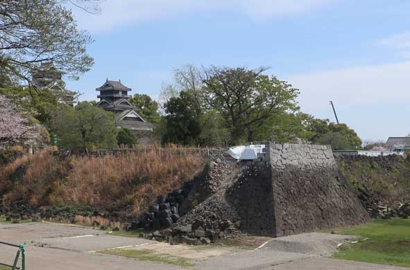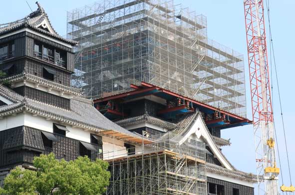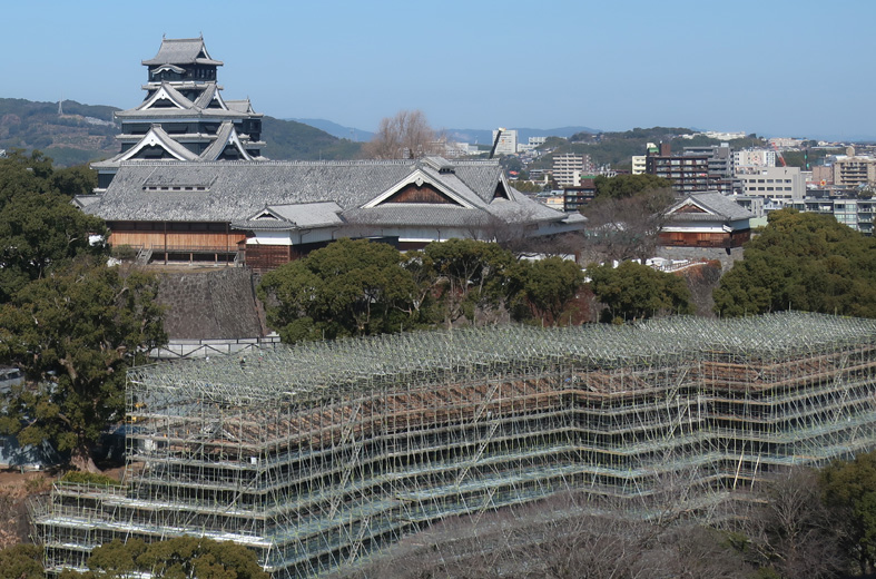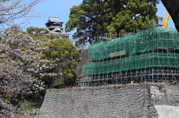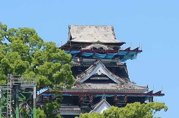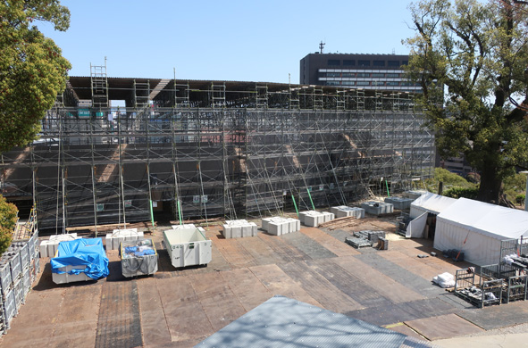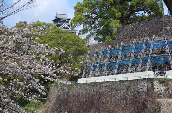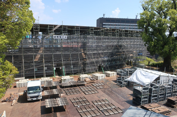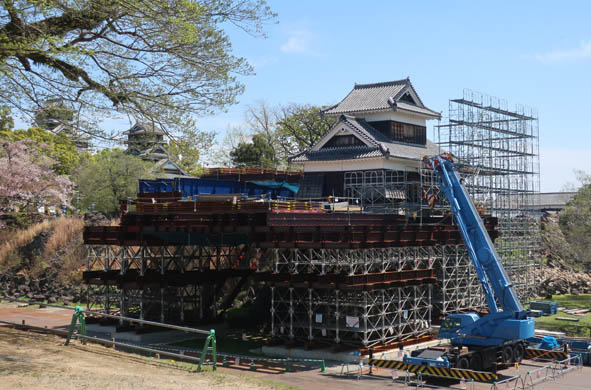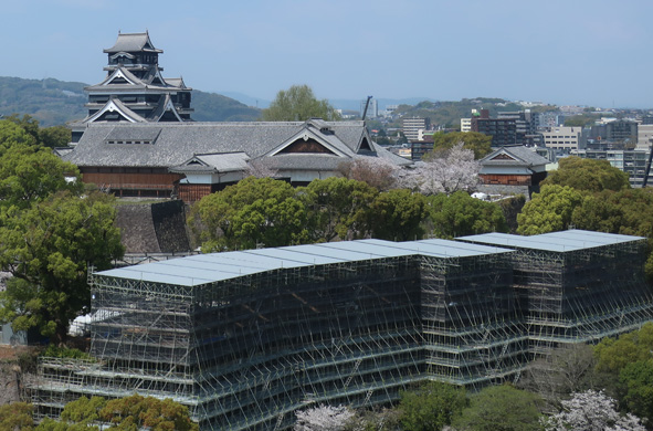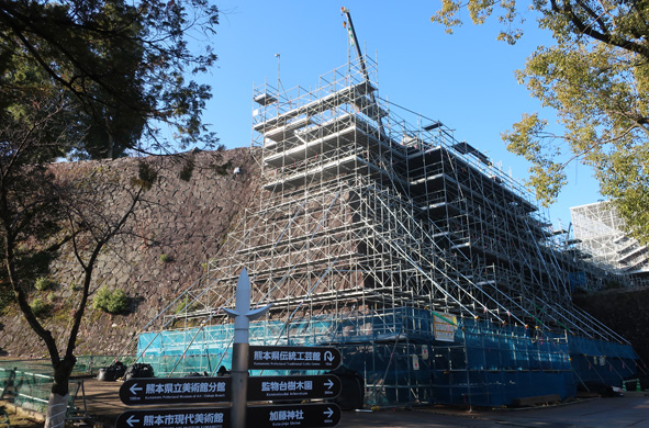 「監物櫓」(国指定重要文化財)は、2023年12月復旧工事完了。「宇土櫓」(国指定重要文化財)は、素屋根に覆われ解体が始まった。復旧予定は2032年度。